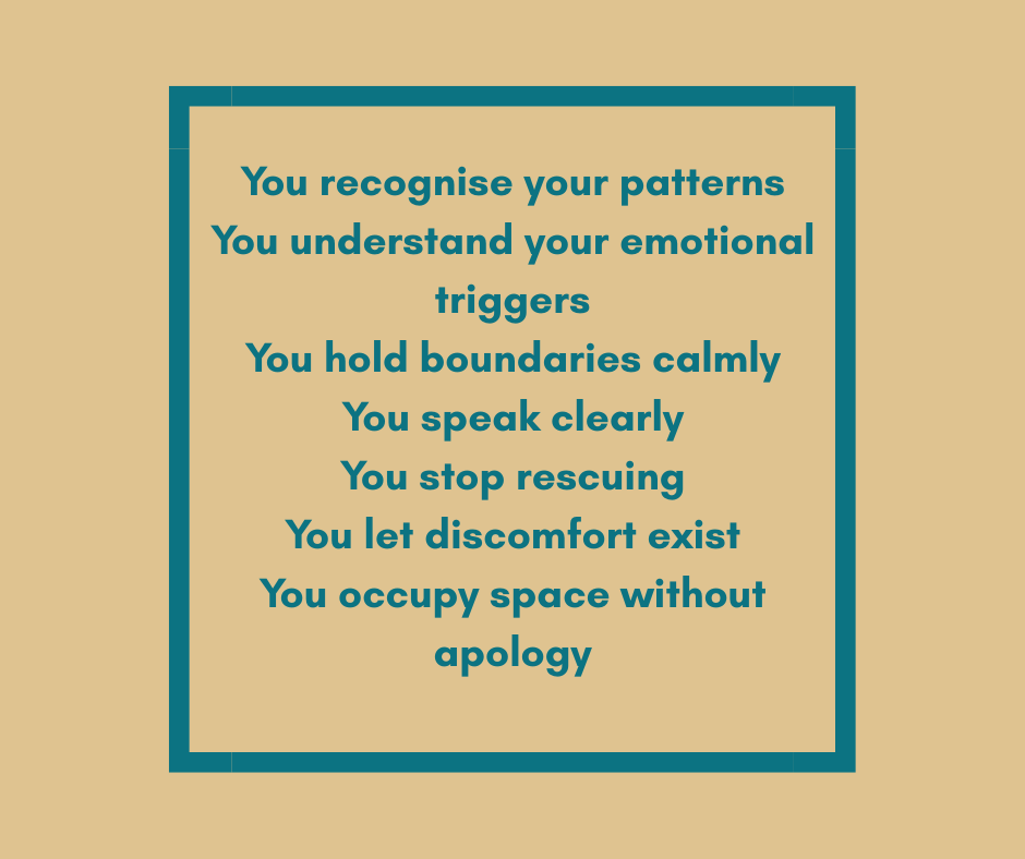 It’s about shifting identity, from over-responsible and self-minimising… to self-respecting and self-led.